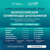 В пригласительном этапе ВсОШ могут принять участие школьники 3-10 классов, а также учителя, родители и все желающие. Олимпиада состоится с 16 апреля по 22 мая 2026 года на платформе «Сириус.Курсы» в соответствии с расписанием.