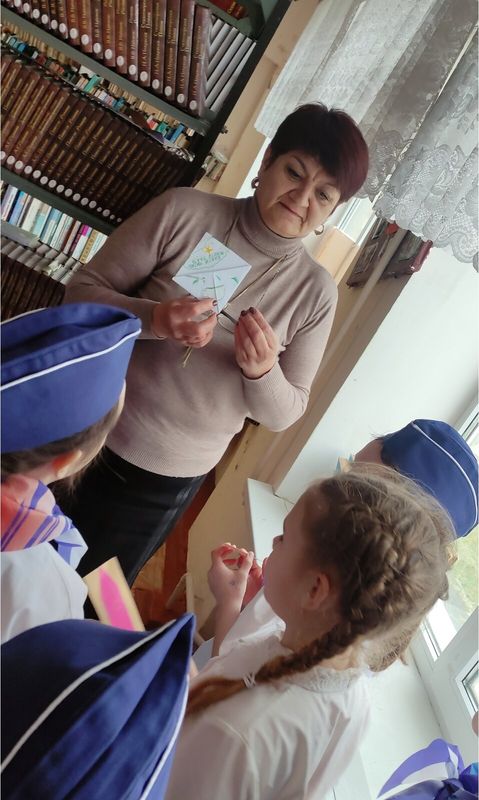 Ребята сделали мотивирующие закладки и отнесли их в школьную библиотеку. В библиотеке они узнали, что книги нуждаются в их помощи. Валентина Ивановна объяснила как можно восстановить потрёпанные обложки. Третьеклассники с интересом взялись за работу.