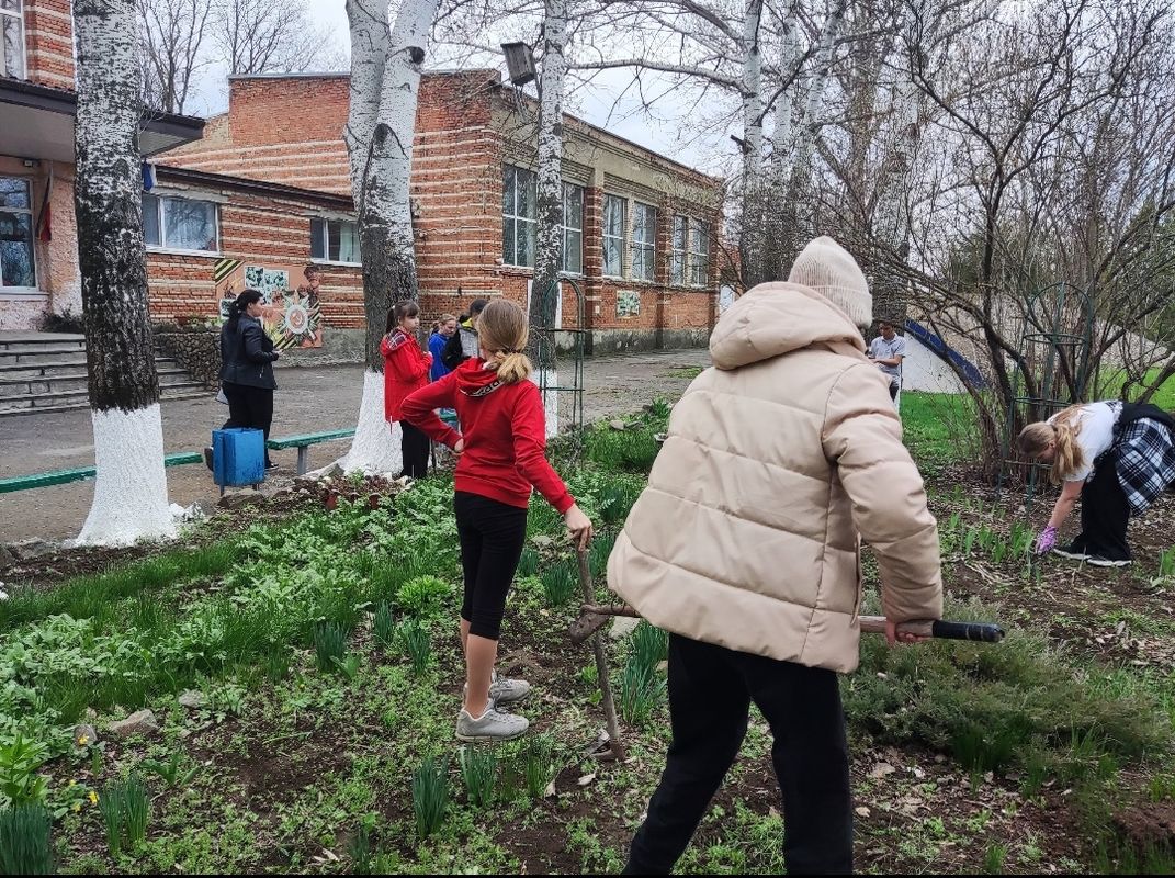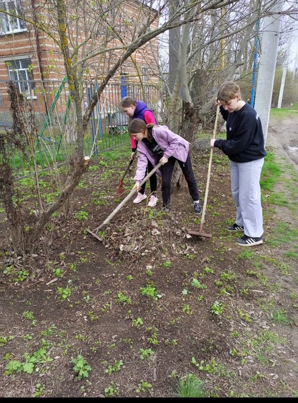 По инициативе директора школы, председателя Родионово-Несветайского отделения "Союз женщин России" Оноприенко Т. В. в МБОУ "Большекрепинская СОШ"им. Героя Советского Союза Пода П.А прошел субботник на территории школьного двора.