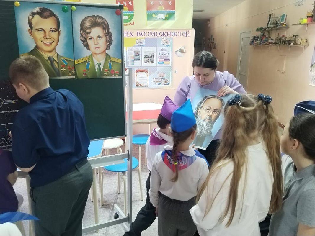 Дети вспомнили великих людей :Ю. Гагарина, В. Терешкову, А. Леонова, нашего земляка из г. Новочеркасска, окончившего работу на МКС в сентябре 2024 года Н. Чуба.