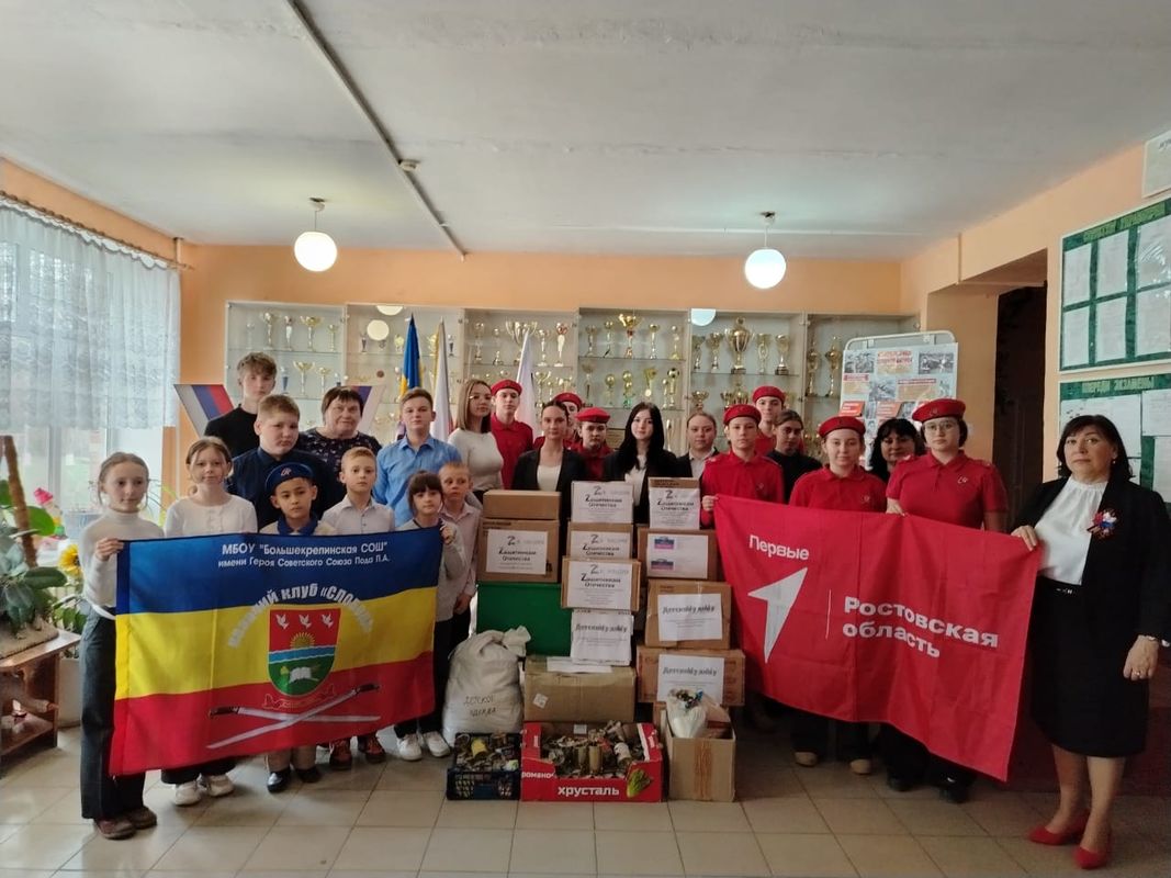 В казачьей Большекрепинской школе имени Героя Советского Союза Пода П.А. стало уже доброй традицией собирать гуманитарный груз к праздничным и памятным датам для военнослужащих, находящихся в зоне СВО. Вот и в преддверии Пасхи учащиеся школы, воспитанники КДМО «Донцы» и школьного казачьего клуба «Слобода», члены движения «Первые» и юнармейцы школы приняли участие в акции «Zа наших! Zащитникам Отечества!» и отправили участникам СВО гуманитарную помощь. Школьники написали письма для воинов. Пусть письма детей согревают наших солдат теплом домашнего очага. Сотрудники, педагоги и семьи обучающихся собрали продукты питания, средства гигиены, медикаменты и предметы первой необходимости. Ребята, под руководством педагогов школы: Т.В.Оноприенко, директора школы, руководителя Родионово-Несветайского отделения движения «Союз женщин России», Е.Н.Статывка и М.В.Статывка, казачек СКО «Большекрепинское» изготовили с учащимися партию сухих армейских душей и лечебных витаминных киселей.