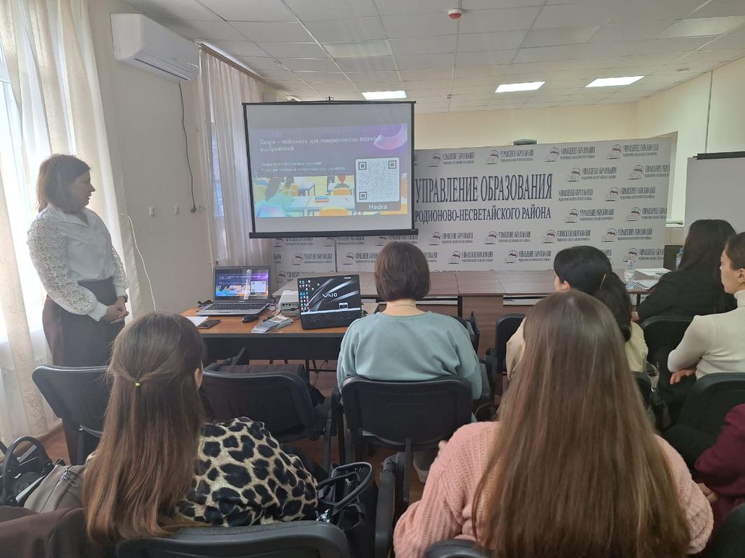 Заседание завершилось прослушиванием Гимна молодых педагогов Родионово- Несветайского района, который Юлия Владимировна написала для коллег, а озвучила его с помощью ИИ.