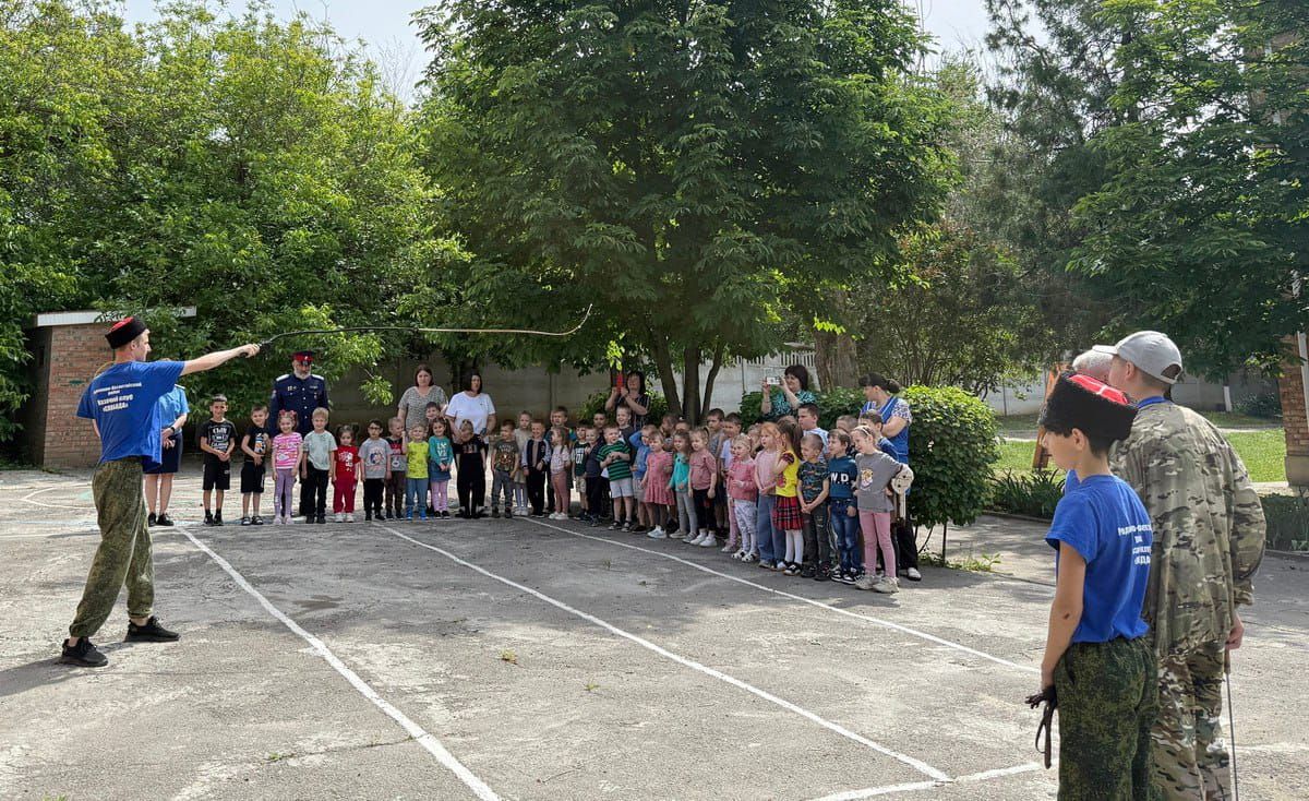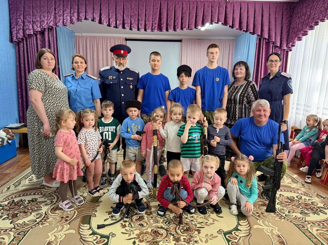 28 мая в казачьем детском саду «Ладушка» прошёл познавательный урок. А провели его воспитанники и руководитель казачьего клуба «Слобода» МБОУ «Большекрепинская СОШ» имени Героя Советского Союза Пода П.А. со статусом «казачье» И.А.Иванов, атаман СКО «Родионовка».