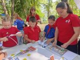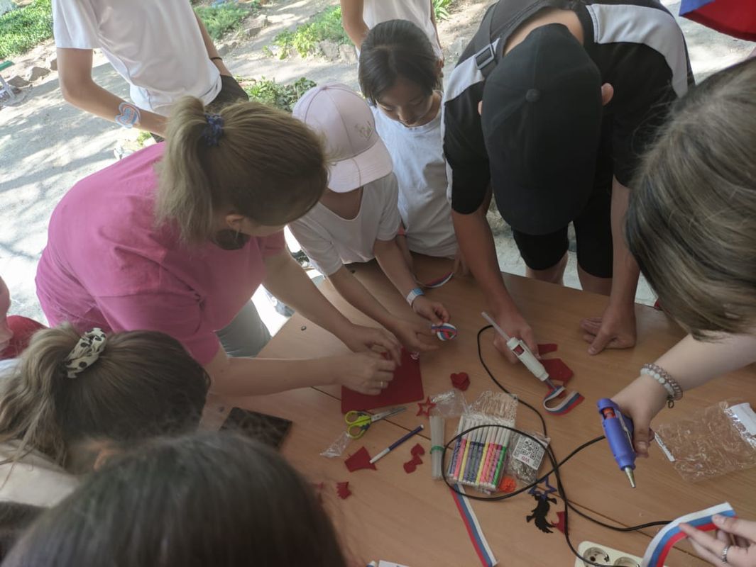 На станции "Россия в сердце, в руках - аксессуары" участники проявляли свою креативность и мастерство, изготавливая своими руками патриотические аксессуары. Ребята создавали браслеты и другие сувениры с использованием символики России.