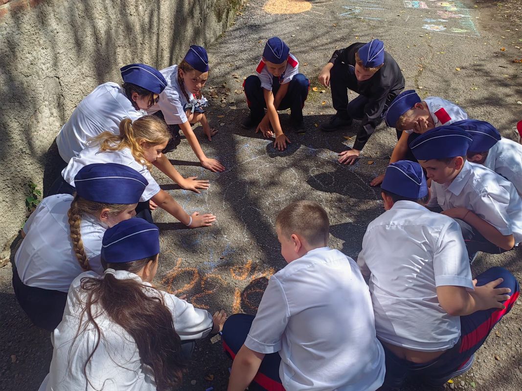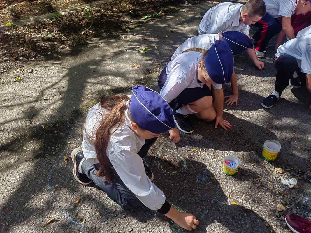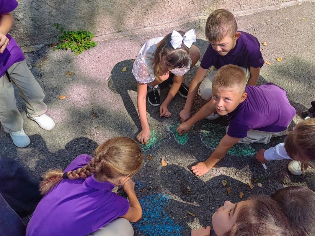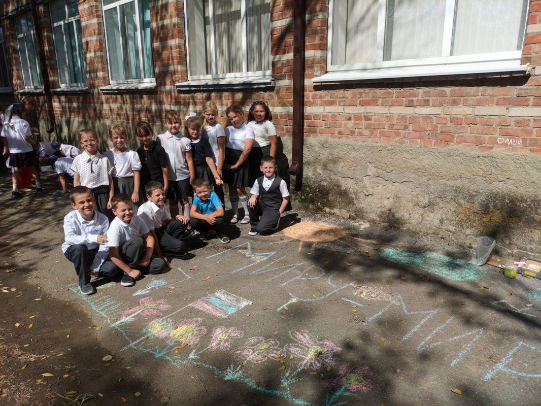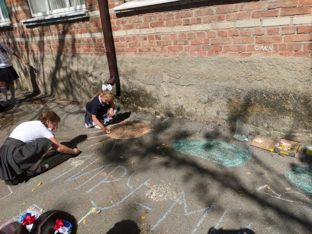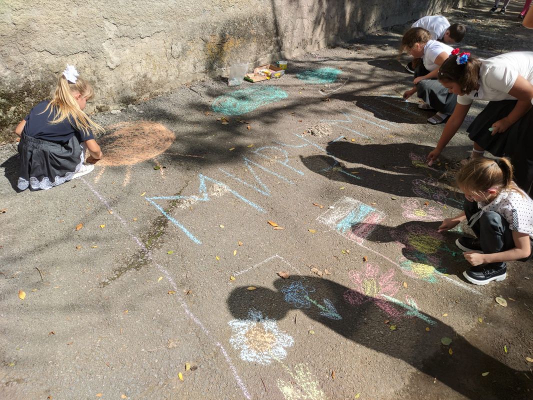 В нашей стране 3 сентября установлена памятная дата – День солидарности в борьбе с терроризмом. Ученики начальных классов МБОУ "Большекрепинская СОШ" им.Героя Советского Союза приняли участие в асфальтном вернисаже "Мы рисуем мир".