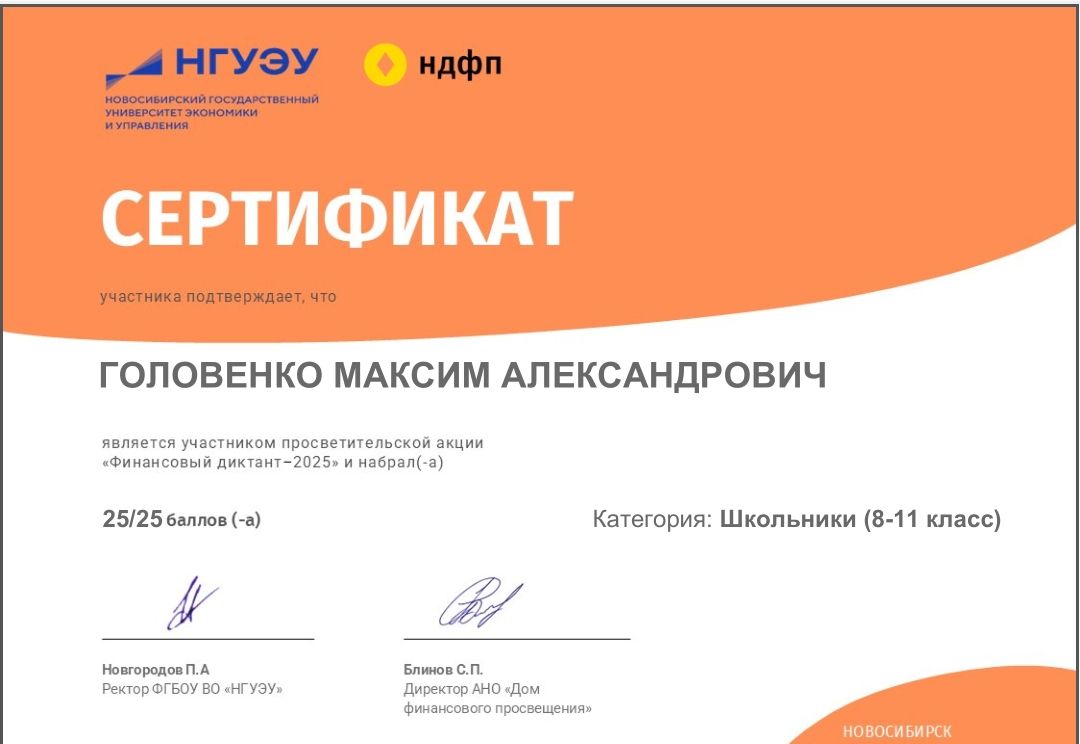 Участники кружка "Финансовая грамотность" (руководитель Л.Н.Яковенко) приняли участие в ежегодной просветительской акции "Финансовый диктант". Регулярные занятия позволяют ученикам показывать высокие результаты.