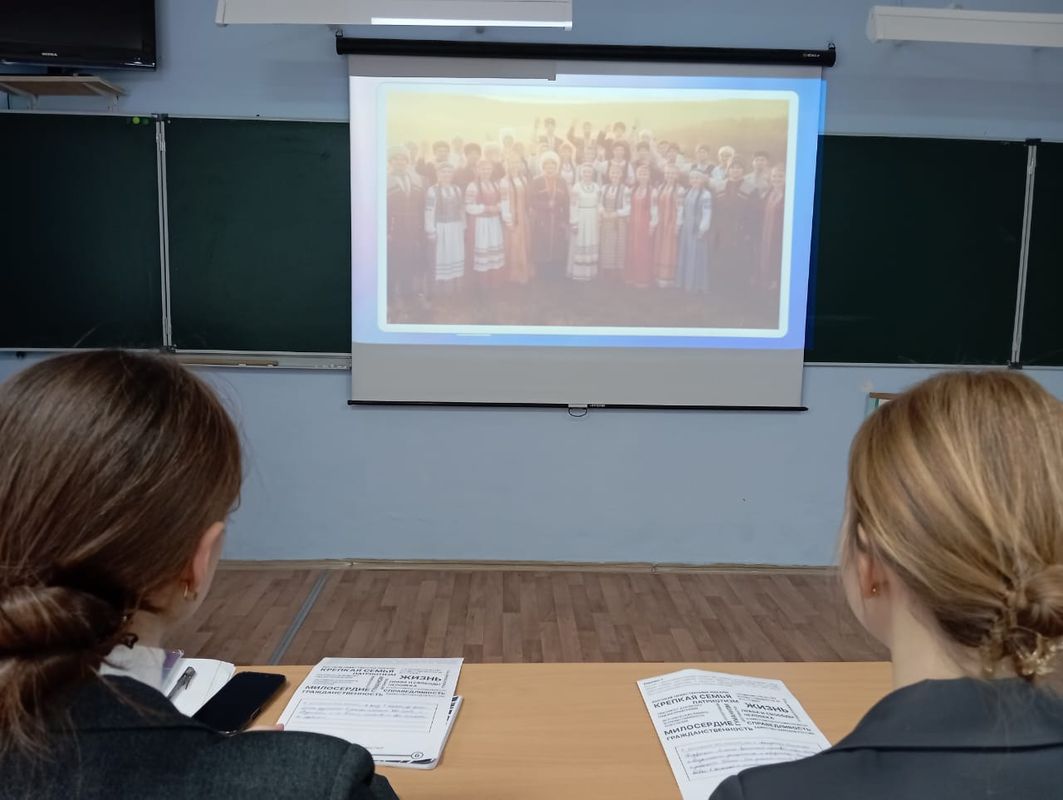 Ученики узнали о многообразии культур народов России и о том, что всех жителей нашей страны объединяют общие ценности: единая география, история, Конституция Российской Федерации, духовно-нравственные ориентиры, великие победы и культурные достижения.