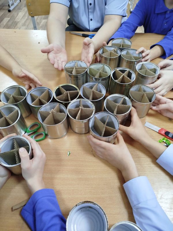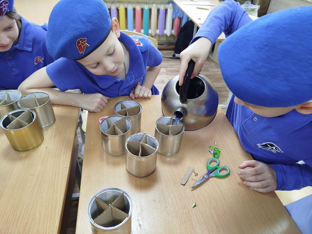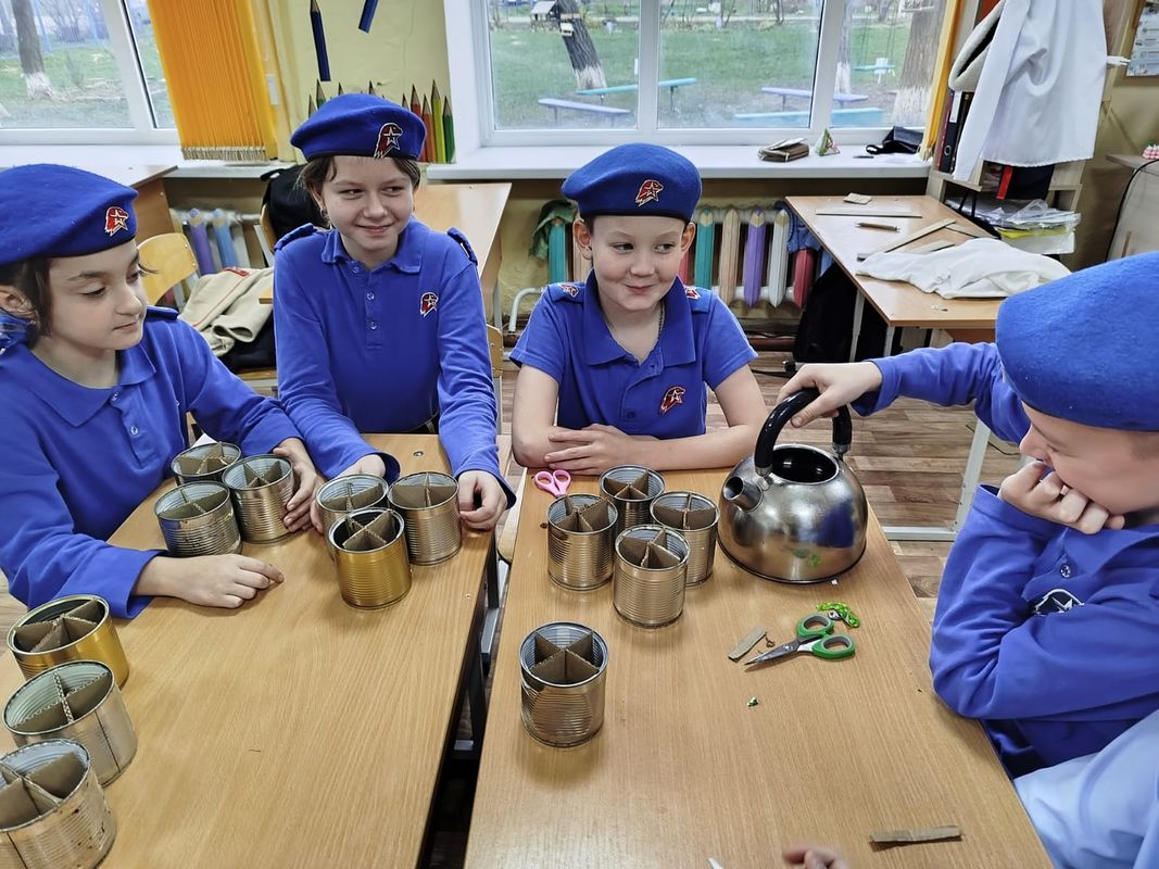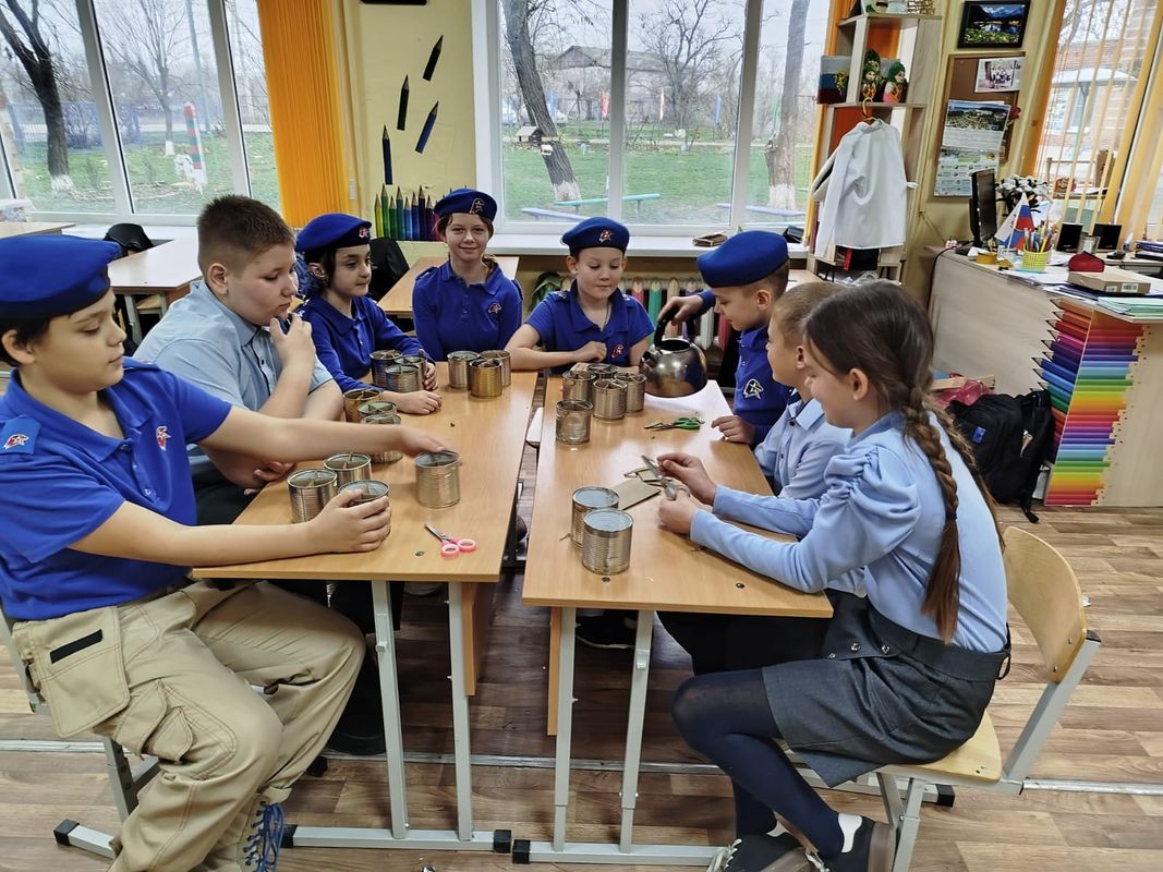 Ученики 4б класса, отряд «Донская гвардия» под руководством директора школы, председателя Родионово – Несветайского отделения «Союз женщин России» Оноприенко Т.В. совместно с Алтуховой Т.И. , на уроке технологии, изготовили окопные свечи.
