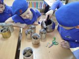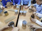 Ребята с удовольствием резали картон, закладывали в баночки, топили и заливали парафином баночки.