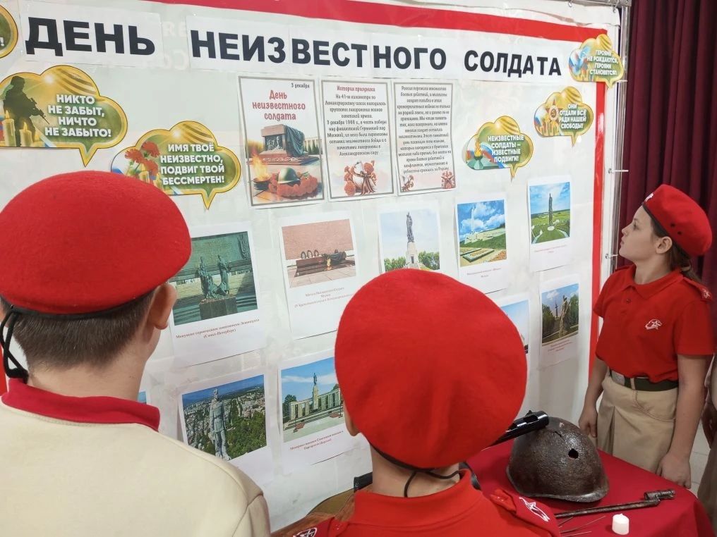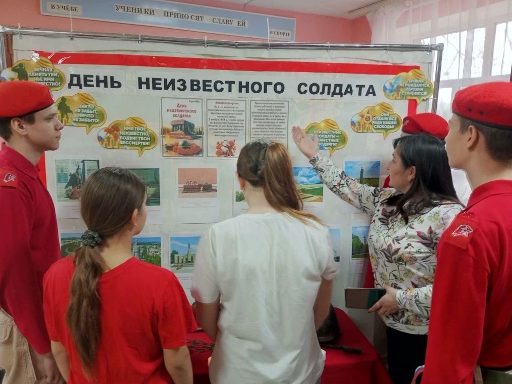 В День Неизвестного Солдата, юнармейцы Большекрепинской школы вместе со своими наставниками торжественно оформили Стенд памяти. Это мероприятие стало данью уважения героям, чьи имена остались неизвестны, но чей подвиг навсегда вписан в историю нашей Родины.