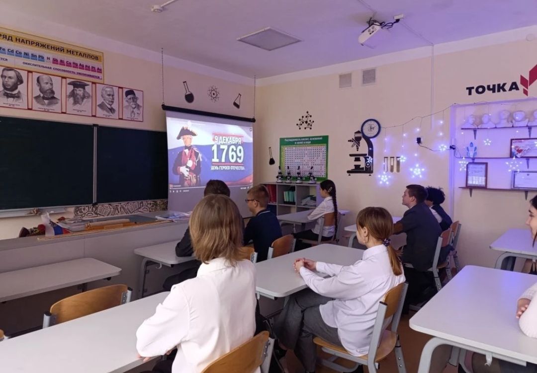 В рамках классного часа ребята вспомнили, что до революции в России отмечался День георгиевских кавалеров, который в советские времена был отменен. Особое внимание было уделено героям Великой Отечественной войны, чьи примеры самоотверженности и отваги вдохновляют новые поколения защитников Отечества.