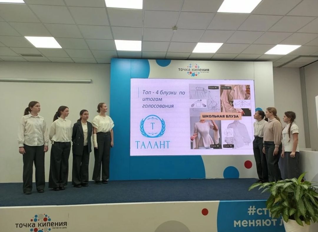 При поддержке директора школы, председателя Родионово-Несветайского отделения "Союз женщин России" Оноприенко Т. В. совместно с учителем технологии Беликовой М.П. ученицы МБОУ Большекрепинская СОШ Ткачева Алина, Куринная Виктория, Тамразян София, Агалиева Алла, Киселева Полина, Геранина Дарья, Горбанева Виктория два месяца интенсивно работали над проектом «Школы первых» «Школьная блузка нового поколения». 13 команд, 6 компаний-партнёров. Ребята из Ростова, Луганска, Новочеркасска и МБОУ «Большекрепинской СОШ» имени Героя Советского Союза Пода П.А. представили проекты: от мерча и сайтов до дизайна и интерактивных инсталляций.