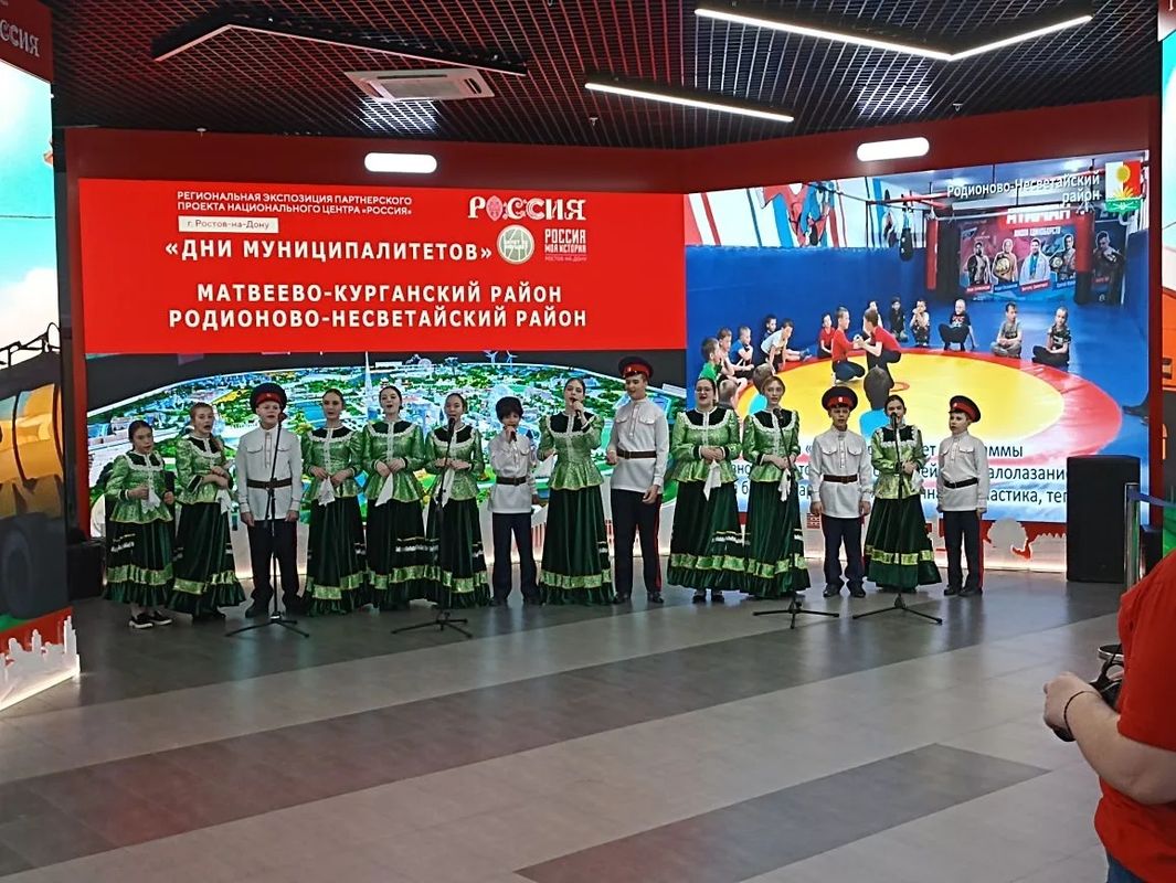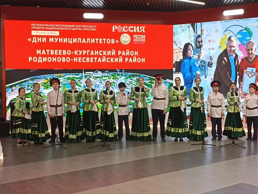 Ребята из школьного казачьего ансамбля «Слобода» радушно встречали гостей хлебом-солью, песнями. А чуть позже они приняли участие в концертной программе Дня муниципальных образований Матвеево-Курганского и Родионово-Несветайского районов.