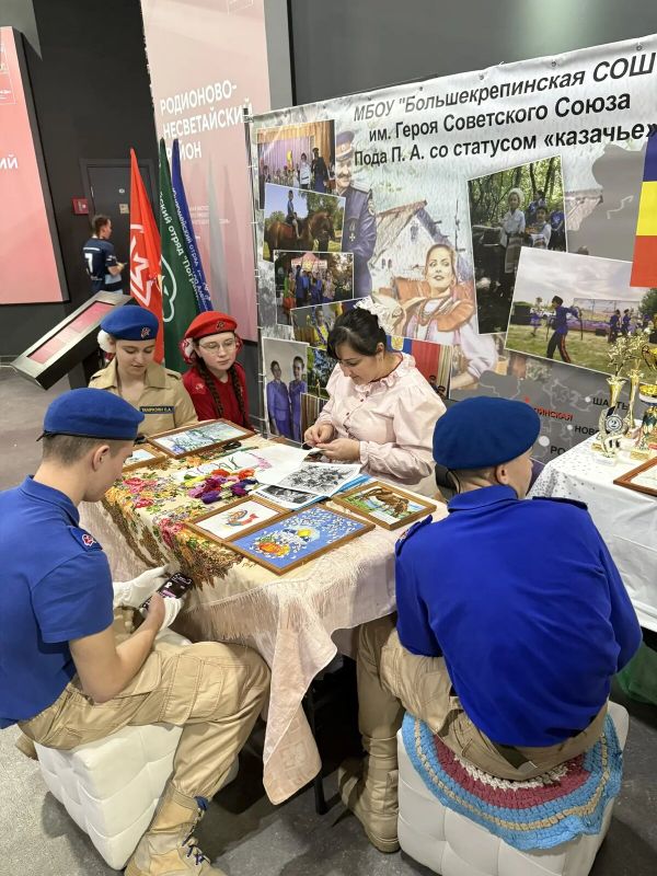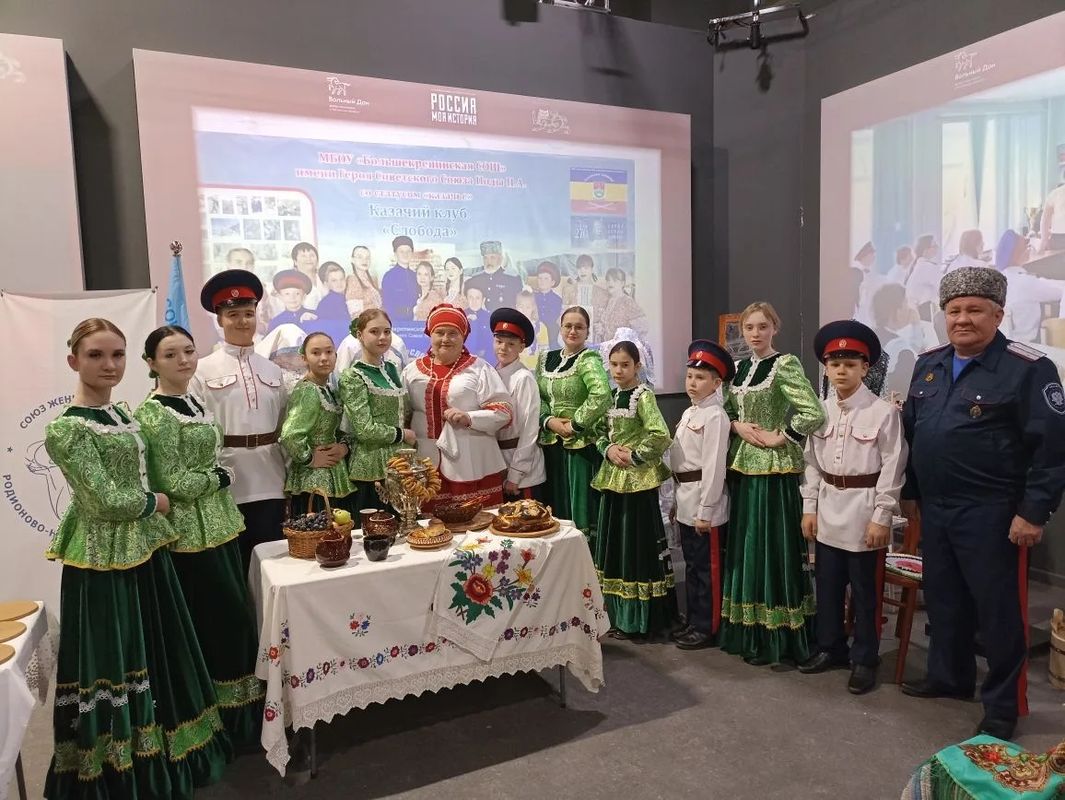 Казачий клуб «Слобода» МБОУ «Большекрепинская СОШ» имени Героя Советского Союза Пода П.А. со статусом «казачье» принял участие в составе делегации школы в «Дне муниципалитетов» Ростовской области. День Родионово-Несветайского района проходил на площадке центра исторического парка «Россия – моя история» в рамках региональной экспозиции партнёрского проекта Национального центра «Россия».