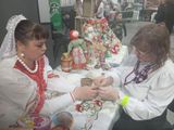 Рядом с казачьим куренём разместились столы для мастер-классов казачьих ремёсел. Мастер-класс «Донская обереговая кукла» представили и провели заместитель директора по ВР, казачка М.В.Статывка и выпускница школы, казачка Е.Н. Миронова, а мастер-класс «Вышивка крестиком» - учитель технологии М.П.Беликова.