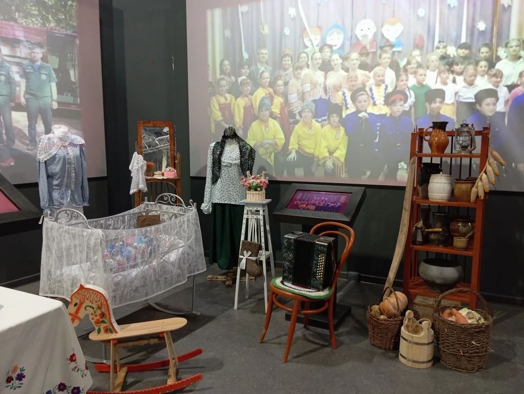 Казачата и их наставники в предложенном павильоне воссоздали и оформили комнату казачьего куреня. Красочно и ярко смотрелась горница, или как её ещё называли «зала». Стол был накрыт белоснежной вышитой скатертью с вязаными понизу кружевами. А на столе всё готово к приёму гостей: самовар, чайная посуда, каравай, пирожки, яблоки и виноград. Чуть подальше была детская кроватка с лоскутными одеяльцем и подушечкой, в которой уютно спал «малыш». Здесь же были размещены женские казачьи костюмы и этажерка с зеркалом и женскими украшениями, шлычками, платками и платочками, красивыми шкатулками. На импровизированной кухне размещался шкаф с большим количеством кухонной утвари и посуды, бытовыми принадлежностями.