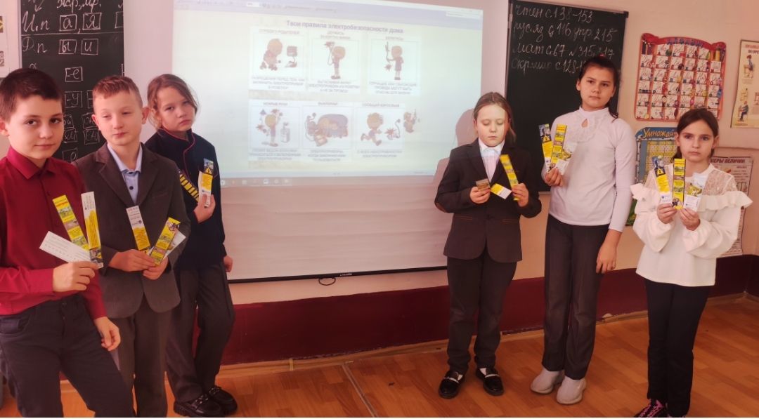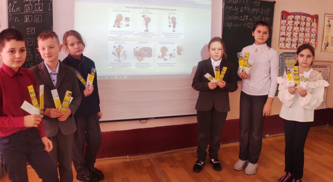 В преддверии зимних каникул представители ПО ЗЭС РНРЭС— мастер Большекрепинского участка Николай Николаевич Буренко и электромонтёр Олег Пантелеевич Манохин — провели для учеников начальной школы познавательную беседу о правилах электробезопасности .