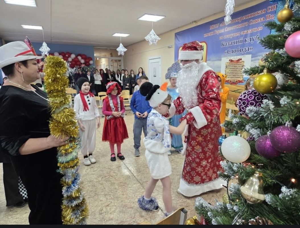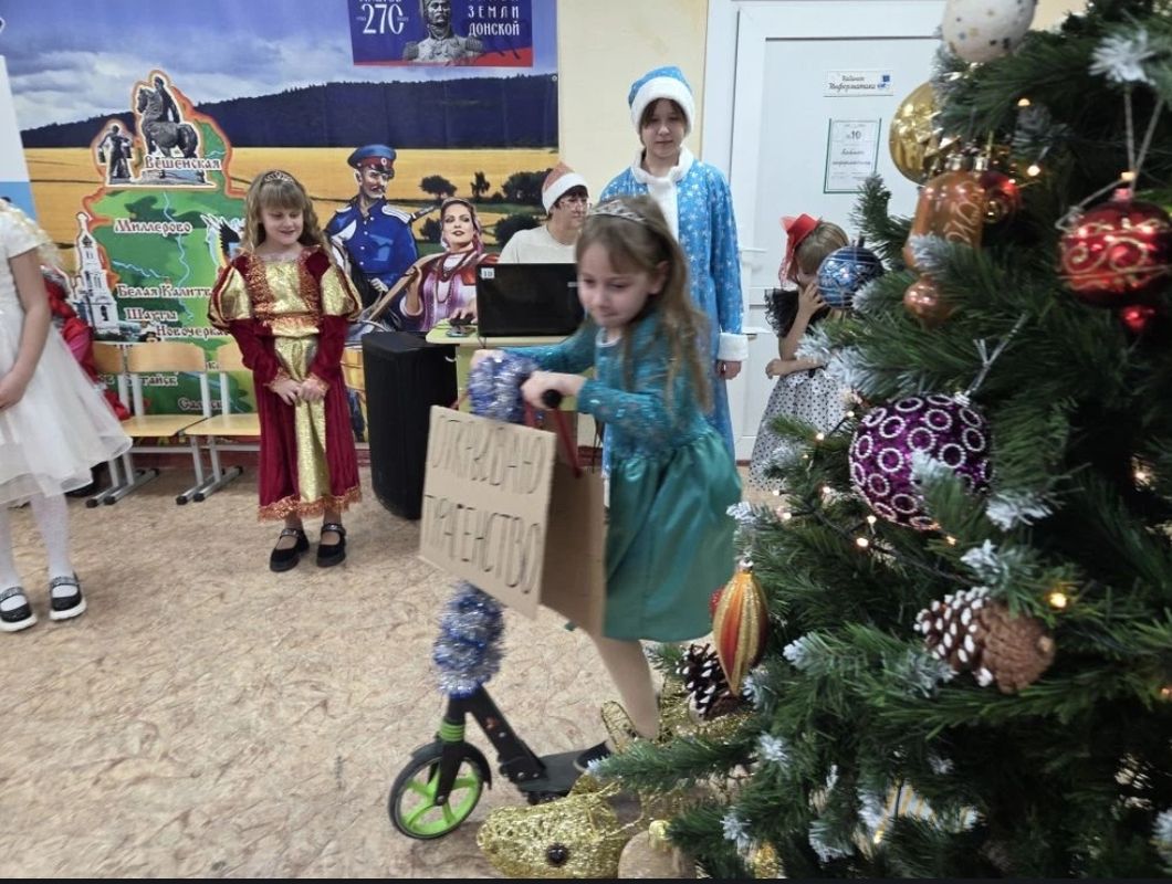Праздничное представление, подготовленное с любовью педагогами и самими учениками, стало настоящим подарком для всех присутствующих. Мероприятие началось с приветственного слова директора школы, председателя Родионово-Несветайского отделения "Союз женщин России" Т.В.Оноприенко, которая поздравила всех с наступающим Новым годом. После чего на сцене развернулась сказочная феерия, наполненная песнями, танцами и веселыми играми. Юные актеры, облаченные в яркие костюмы, мастерски перевоплотились в любимых сказочных персонажей: Снежную Королеву, Снежную бабу, Мешок, Бабу Ягу, а также, Деда Мороза и Снегурочку.