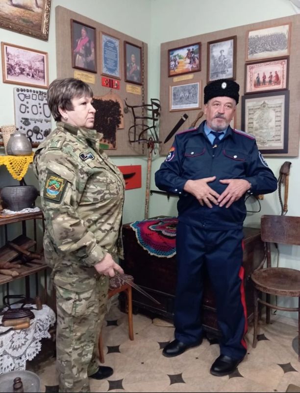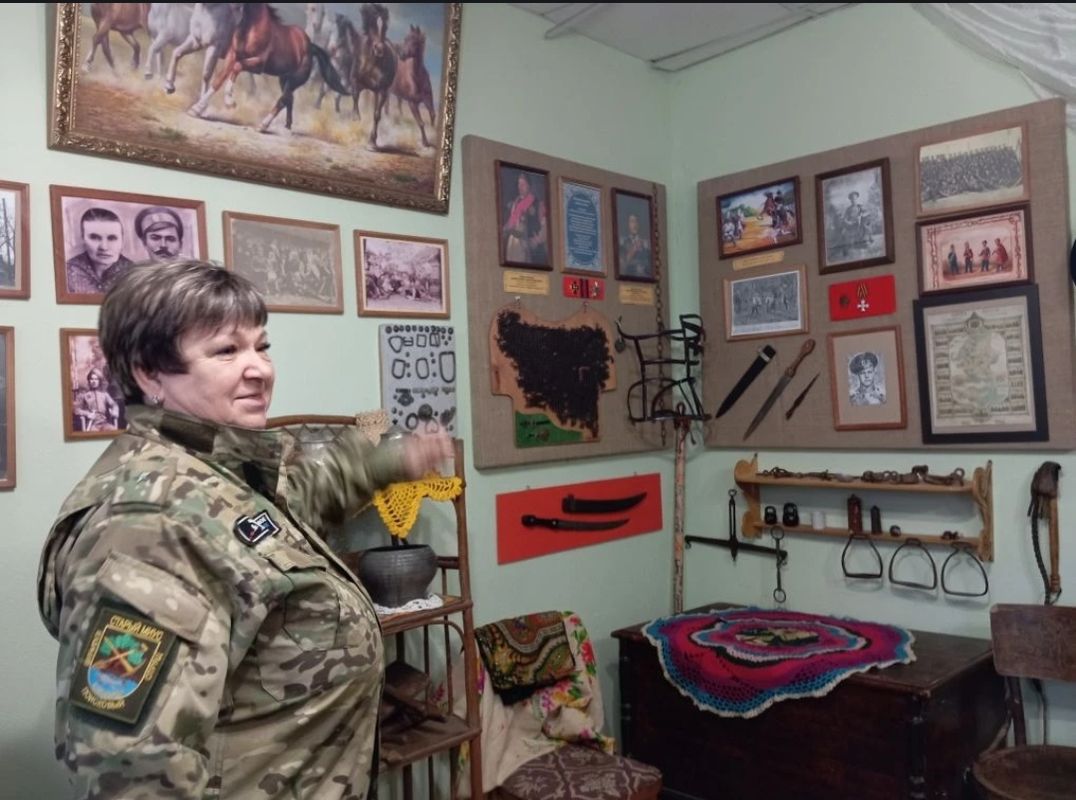 В музее собраны предметы, имеющие отношение к специальной военной операции. Многие экспонаты попали в музей из рук ребят, которым казаки передают гуманитарную помощь. Например, так к ним попал знаменитый БПЛА "Баба Яга".