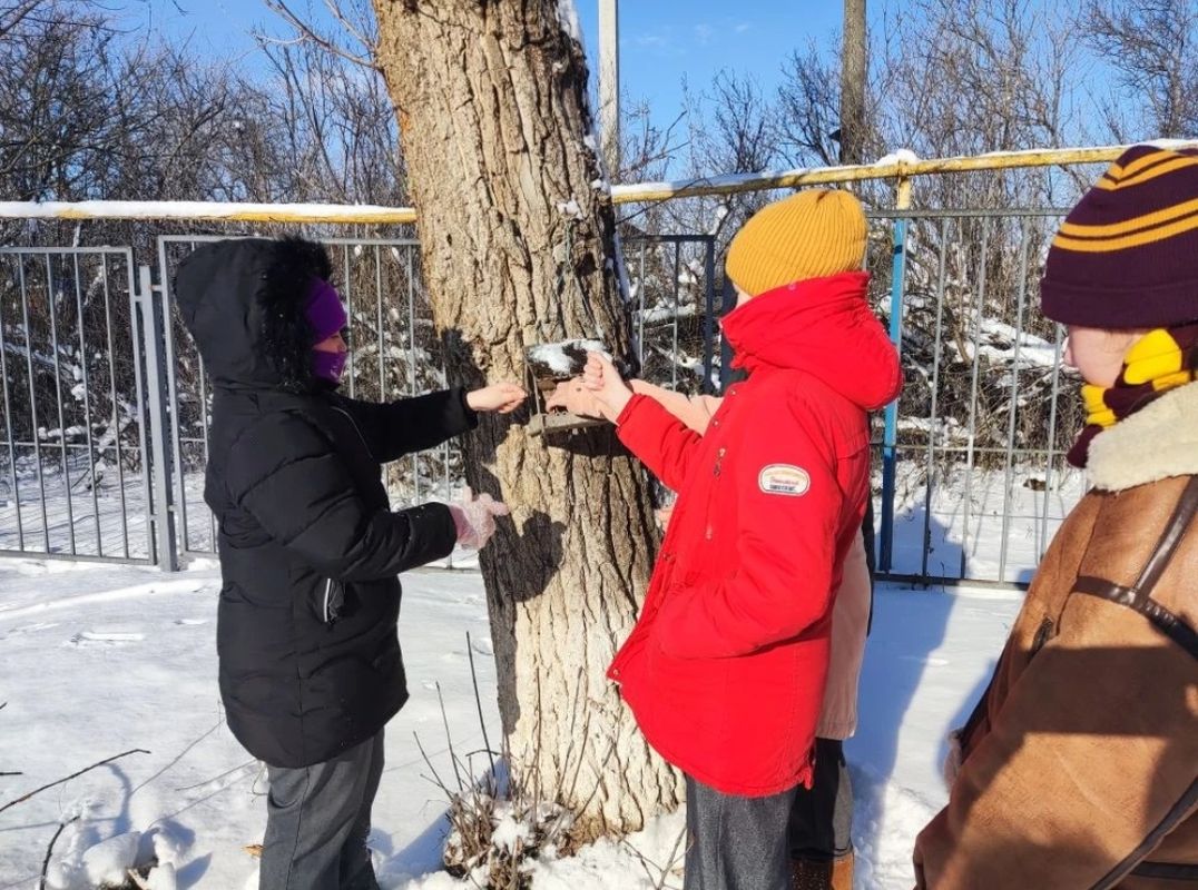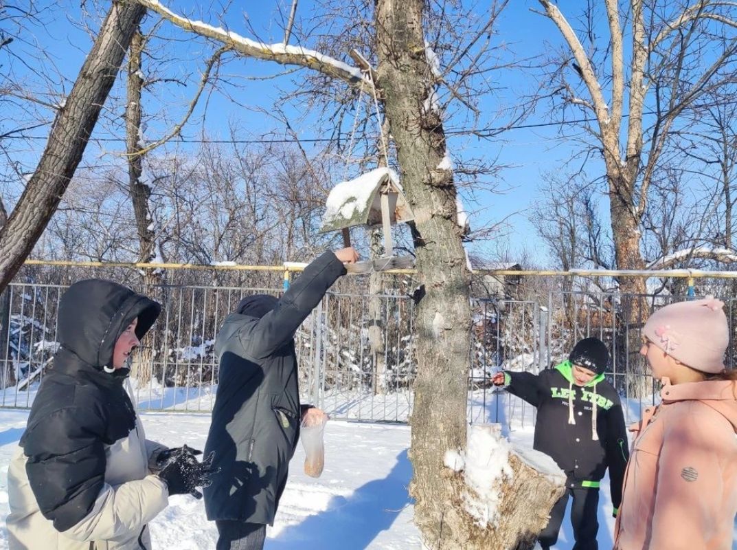 Затем эколята очистили кормушки от снега и наполнили их кормом. Это хорошая и важная традиция заботиться о братьях наших меньших. Ребята знают, что они делают важное и хорошее дело – помогают птицам в трудное зимнее время.
