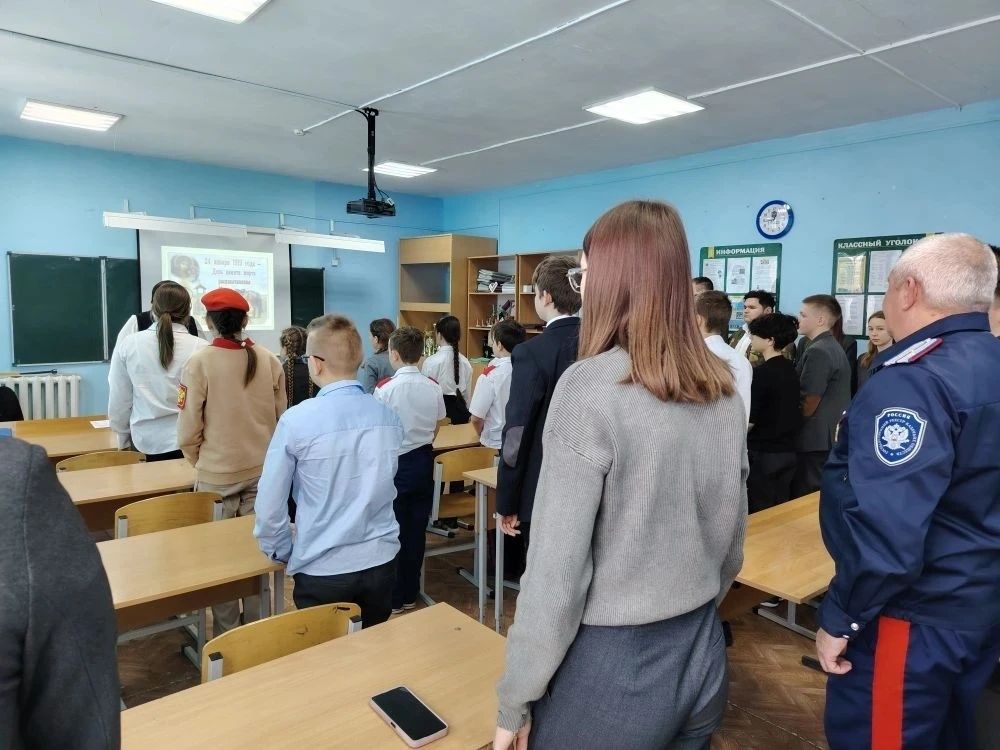 23 января воспитанники КДМО «Донцы», члены казачьего клуба «Слобода», поискового отряда «ДОН» МБОУ «Большекрепинская СОШ» им. Героя Советского Союза Пода П.А. вместе с учителями и казаками-наставниками приняли участие в памятном мероприятии, посвящённом памяти жертв политических репрессий казачества.