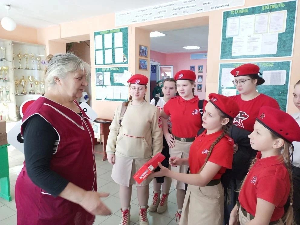 🌸Сегодня юнармейцы отряда «Витязь» под руководством советника директора по воспитанию Людмилы Киселевой и классного руководителя Беликовой М. П. сердечно поздравили директора школы Татьяну Викторовна