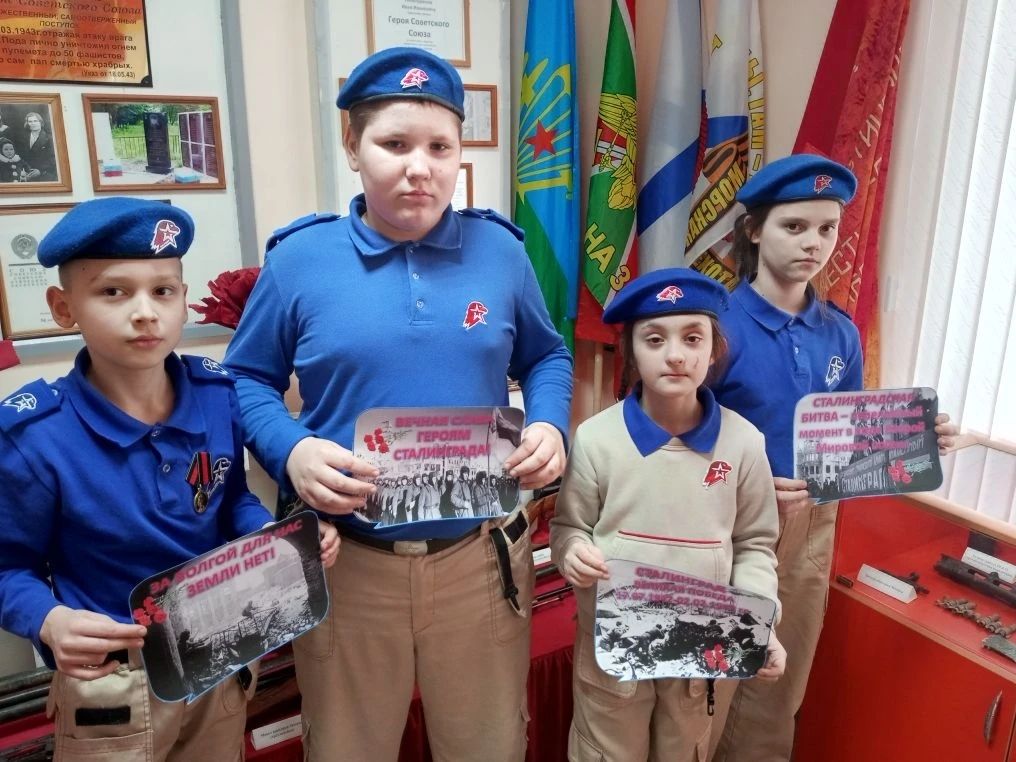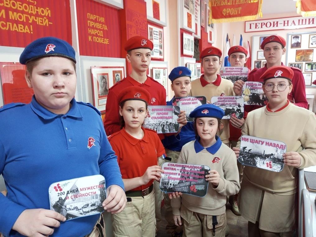 Сегодня юнармейцы Большекрепинской школы под руководством директора ,председателя Родионово-Несветайского отделения «Союз женщин России» Оноприенко Т. В.,советника директора по воспитанию Людмилы Киселевой и класссных руководителей Изотовой Я. А.,Беликовой М. П., Алтуховой Т. И. приняли участие в важной патриотической акции. В рамках мероприятий, посвящённых освобождению Сталинграда, ребята посетили школьный музей, чтобы вновь окунуться в героические страницы истории нашей Родины.