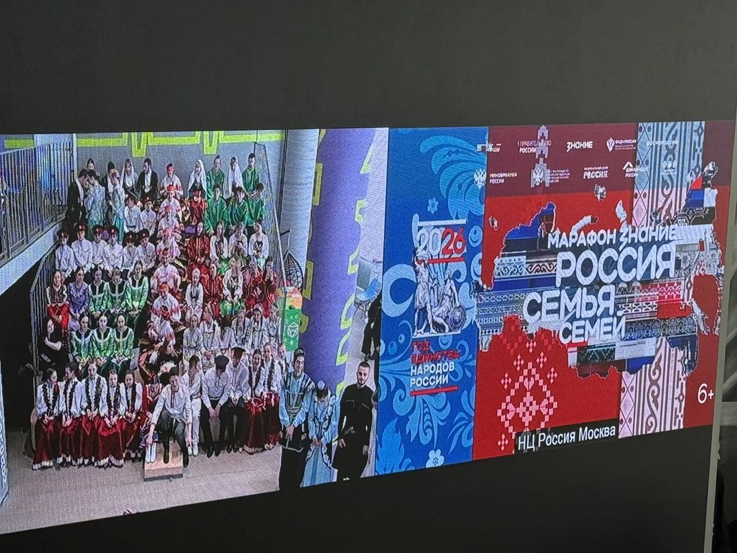 Во второй части мероприятия был организован телемост с Национальным центром «Россия» г. Москва. И мы все стали участниками всероссийского марафона «Россия - семья семей» общества «Знание». Вместе со всей страной ребята знакомились с культурой и обычаями других регионов.