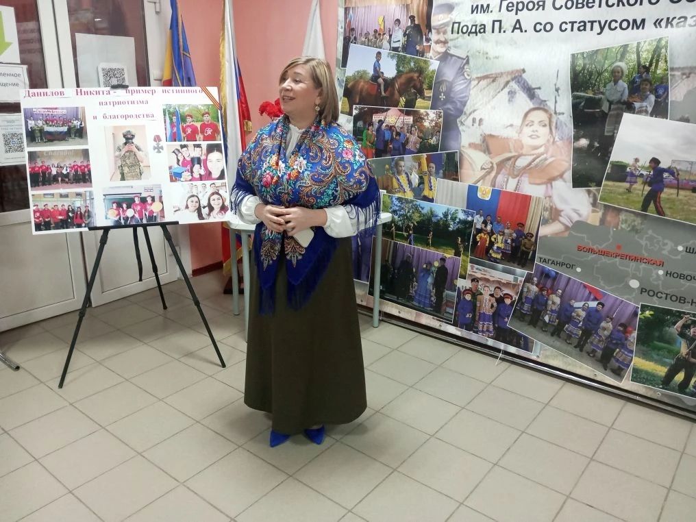 Атман Родионово-Несветайского юрта Пуц А.В.- Специалист сектора работы с казачьими обществами И.В. Дровалёва- Казак Родионово-Несветайской Иванов И.А.