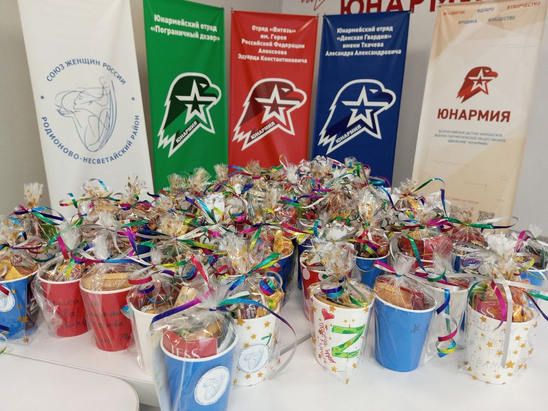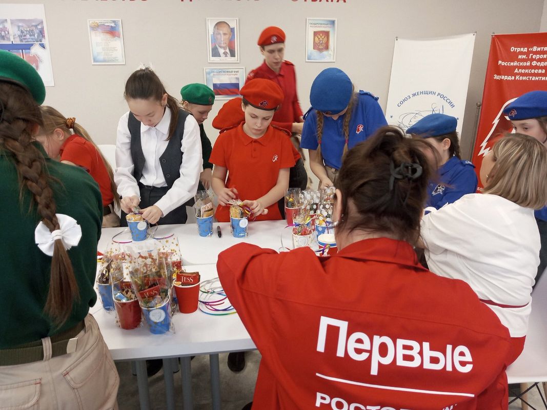 🇷🇺 Ребята подготовили небольшие, но очень душевные подарки — «сладкие стаканчики». В каждый из них юные патриоты аккуратно уложили сладости, пакетики чая и кофе — всё то, что может согреть в минуты отдыха и напомнить о доме.