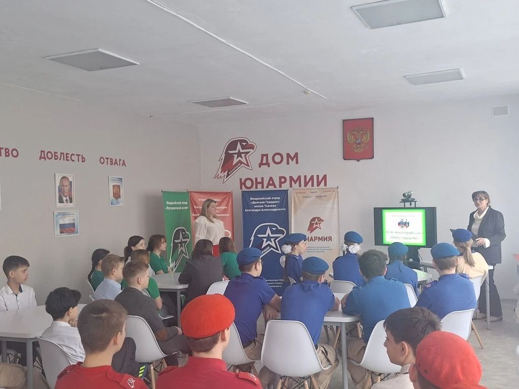 Ребятам рассказали о разнообразии военных профессий, об их важности. Была предоставлена информация о военных ВУЗАХ России и условиях поступления в них.