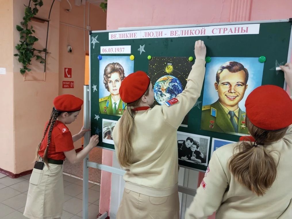 Сегодня мы рады поделиться прекрасной новостью наши опытные педагоги - учитель физики и астрономии Лесничая И. А.,советник директора по воспитанию Л. А.Киселева ,председатель РДДМ Изотова Я. А. при поддержки председателя Родионово-Несветайского отделения «Союз женщин России» Оноприеко Т. В. совместно со школьниками разработали уникальный проект — стендовое оформление, посвящённое двум выдающимся героям нашей Родины: Юрию Алексеевичу Гагарину и Валентине Владимировне Терешковой.