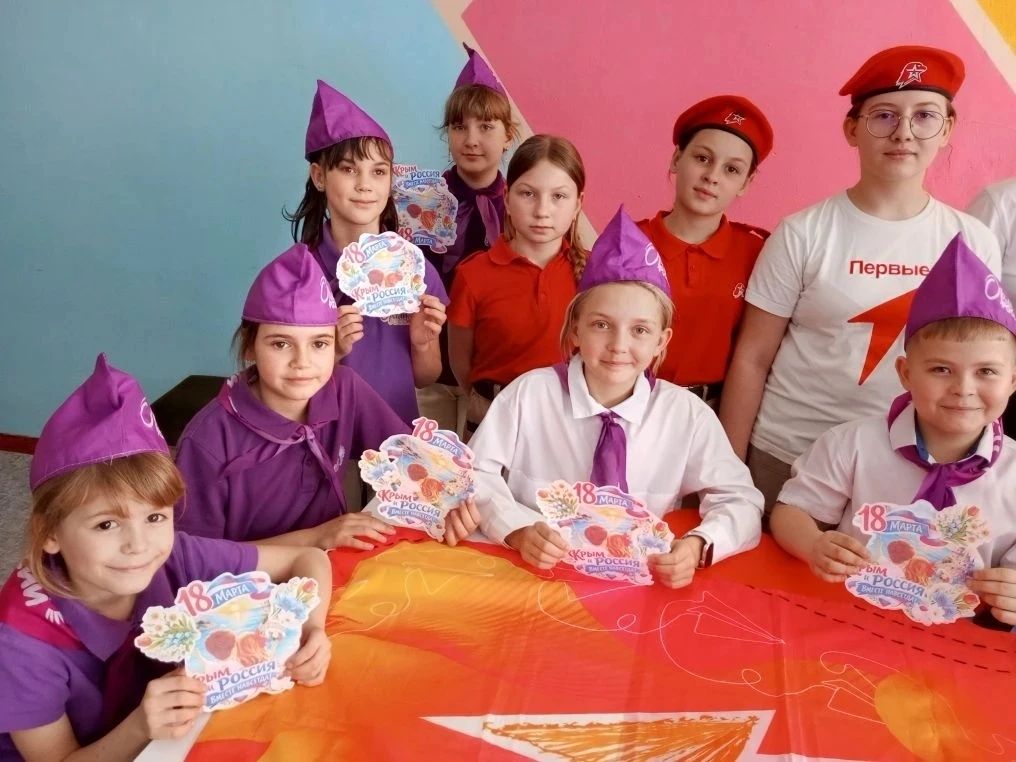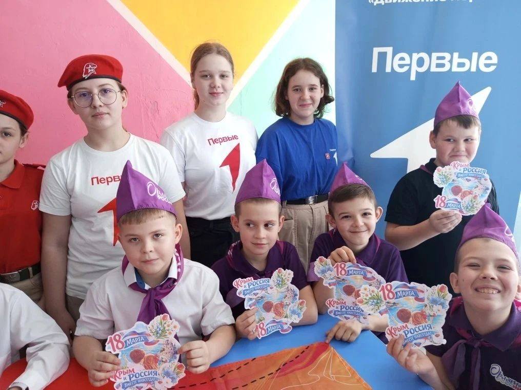 📝В преддверии Дня воссоединения Крыма с Россией активисты «Движение первых,"Орлята России",юнармейцы Большекрепинской школы провели увлекательное мероприятие, посвященное истории этого важного события.