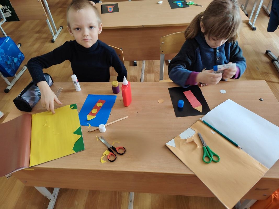 🔹своими руками создали ракету из аппликации,используя изученные формы 📐✂️;