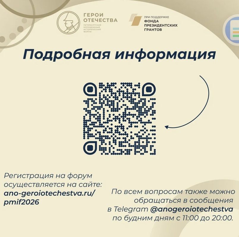 Подписывайтесь на информационный канал Форума, чтобы не пропустить важные объявления: https://t.me/pmif_heroes_of_the_fatherland