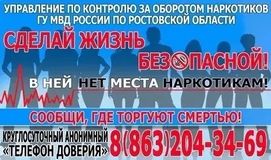 -«телефон доверия» Государственного бюджетного учреждения Ростовской области «Наркологический диспансер» (понедельник-пятница, с 9.00 до 17.30)